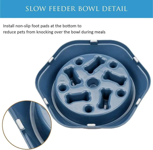 Non-Skid Slow Feeder Bowl for Dogs and Cats, Durable Design to Prevent Choking, Ideal for Medium and Small Pets, Blue