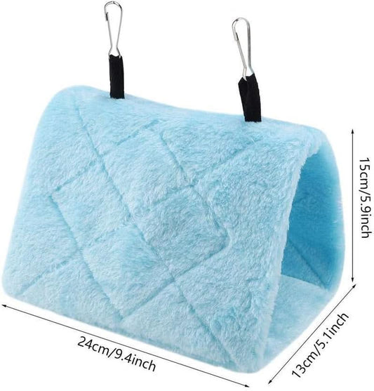 Peony Parrot Hammock - Plush Hanging Cage Tent for Birds, Winter Warm Bed and Toy Pouch (M-Blue)