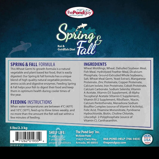 Pond Guy Premium Wheat Germ Fish Food for Koi and Goldfish, 5 lbs - Cold Weather Floating Pellets for Optimal Winter Nutrition