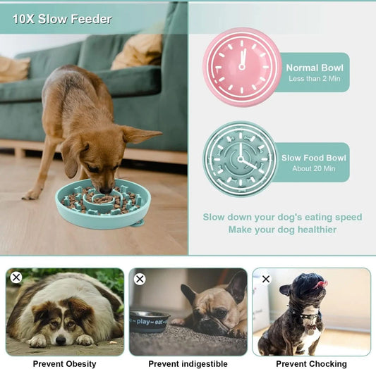 Silicone Slow Feeder Dog Bowl - Non-Toxic, Spill-Proof, and Non-Skid Design for Healthy Eating for Dogs, Puppies, and Cats