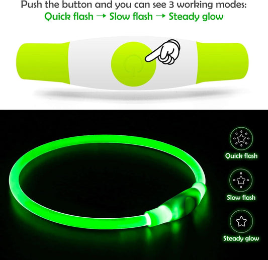 USB Rechargeable LED Dog Collar - Enhanced Night Visibility for Small, Medium, and Large Dogs (Green)