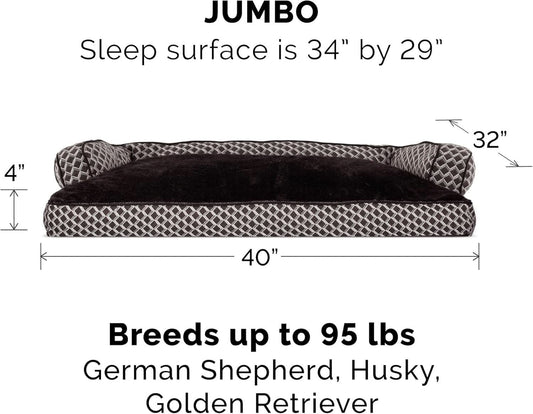 Jumbo/XL Memory Foam Dog Bed for Large Dogs up to 95 lbs with Removable Bolsters and Washable Cover - Plush Woven Couch Sofa in Diamond Gray