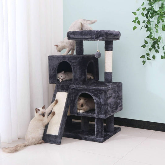 Cat Tree Condo with Sisal Scratching Posts, Plush Perches, and Dual Houses - Grey MMJ10B Kitty Activity Center