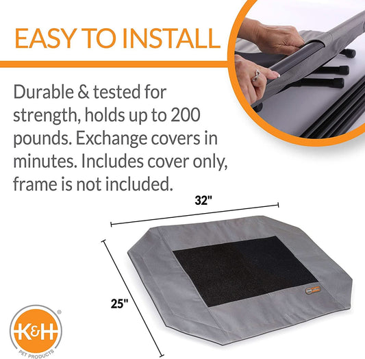 Medium Dog Cot Replacement Cover, Compatible with K&H Medium Pet Cots (Sold Separately), Indoor/Outdoor Use, Breathable Cooling Mesh Center, Machine Washable - 32 x 25 Inches, Gray