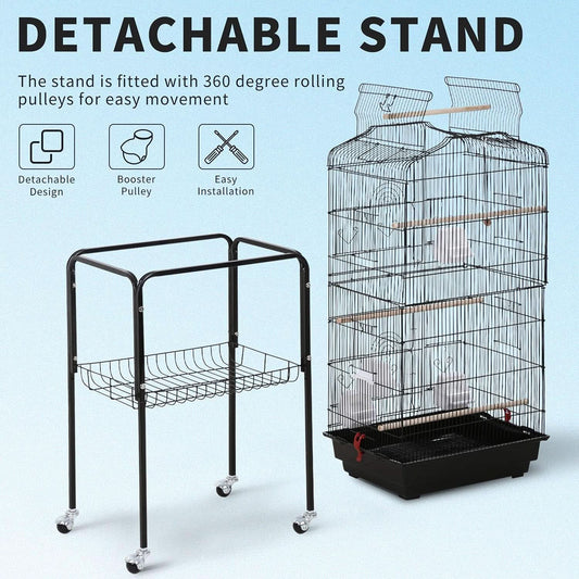 62.4"H Metal Rolling Mid-Size Bird Cage with Detachable Stand, Black