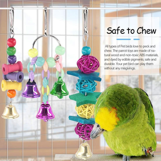 6-Pack Bird Chewing Toy Set with Perches, Swings, and Bells for Parakeets, Cockatiels, Conures, Macaws, Parrots, Finches, and Lovebirds