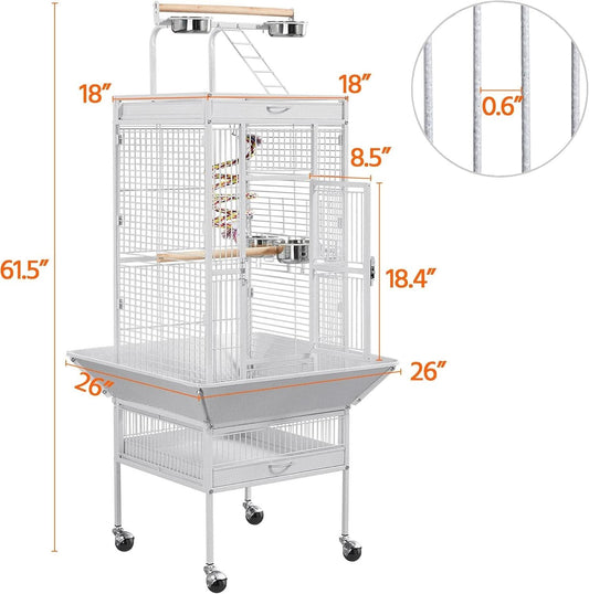 61-Inch White Wrought Iron Large Parrot Bird Cage with Play Top