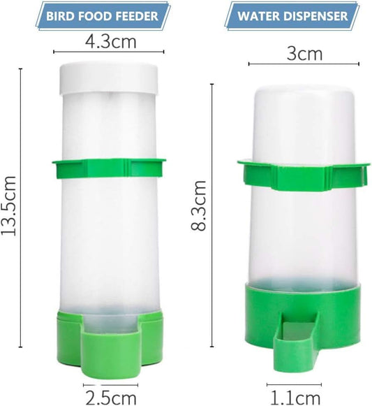 Automatic Bird Water Dispenser Set with Food Feeder for Parrots, Budgies, Lovebirds, and Cockatiels (2 x 60ml Dispensers + 1 x 150ml Feeder)