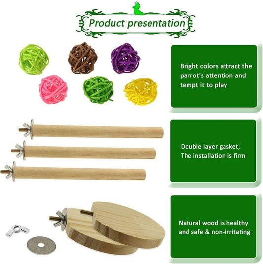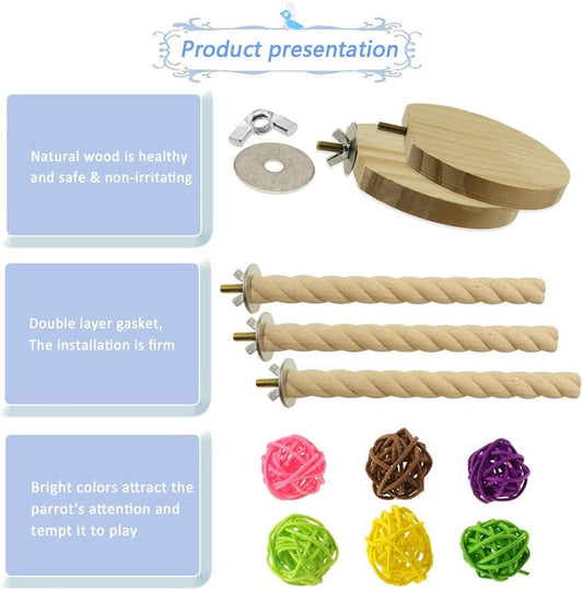 Natural Wood Bird Perch Set for Cages - 11 Pack of Wooden Stand Accessories for Parrots, Parakeets, Budgies, Cockatiels, Conures, Macaws, and Finches (Type A)