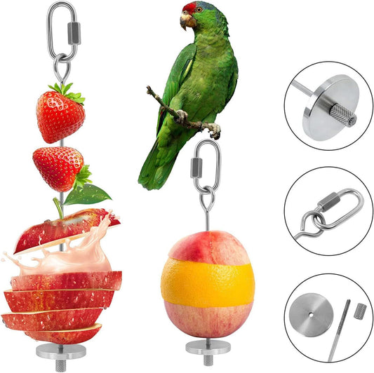 Stainless Steel Bird Food Holder and Foraging Toy for Parrots - Small Size Fruit and Vegetable Skewer