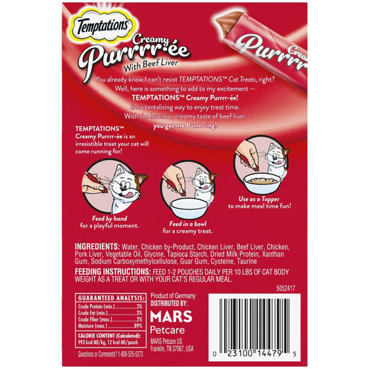 Creamy Puree with Beef Liver Lickable, Squeezable Cat Treats, 16-Pack of 12G Pouches