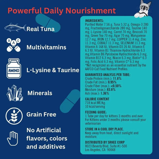 Lickable Cat Treats - Real Tuna Multivitamin Puree with Lysine & Taurine for Indoor Cats | Grain-Free Squeeze Tube (50 Count)