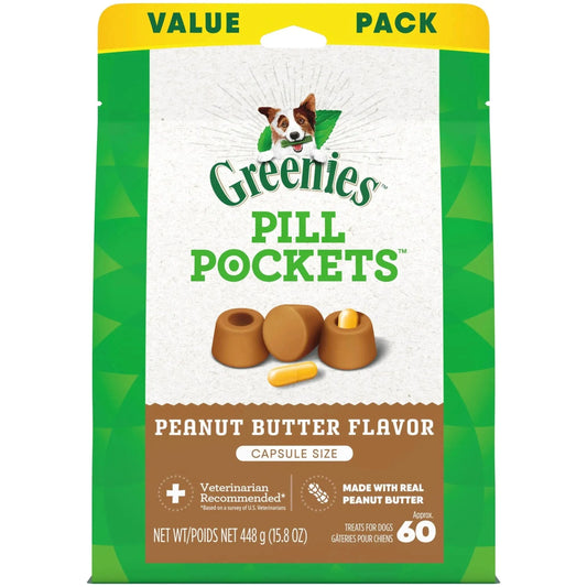 Pill Pockets for Dogs Peanut Butter Large, Capsule Size Soft Dog Treats, 15.8 Oz, (60 Pk)