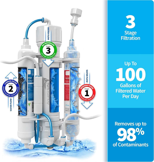 RO Buddie 3-Stage Reverse Osmosis Water Filtration System for Aquariums and Fountains, 100 GPD