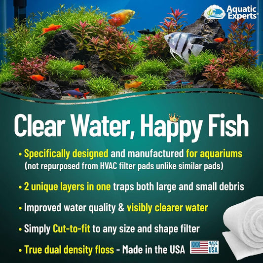 Premium Aquarium Filter Floss - Filterfirst Media Roll for Crystal Clear Water, 3/4" - 1" Thickness (12" Wide, 24' Long)