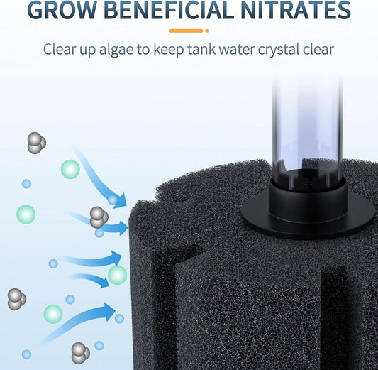Large Bio Sponge Filter for Aquariums - Quiet Foam Filter for Betta, Fry, Shrimp, and Small Fish, Suitable for Tanks up to 60 Gallons
