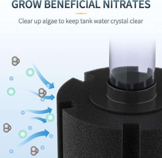 Large Bio Sponge Filter - Quiet Foam Filter for Betta, Fry, Shrimp, and Small Fish for Aquariums up to 50 Gallons