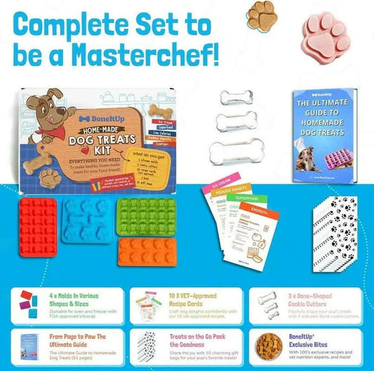 Homemade Dog Treat Kit - DIY Dog Treat Baking Kit W/Molds, Cutters, Recipes & Gift Bags - Bake Fresh, Healthy Organic Training Treats for Dogs at Home