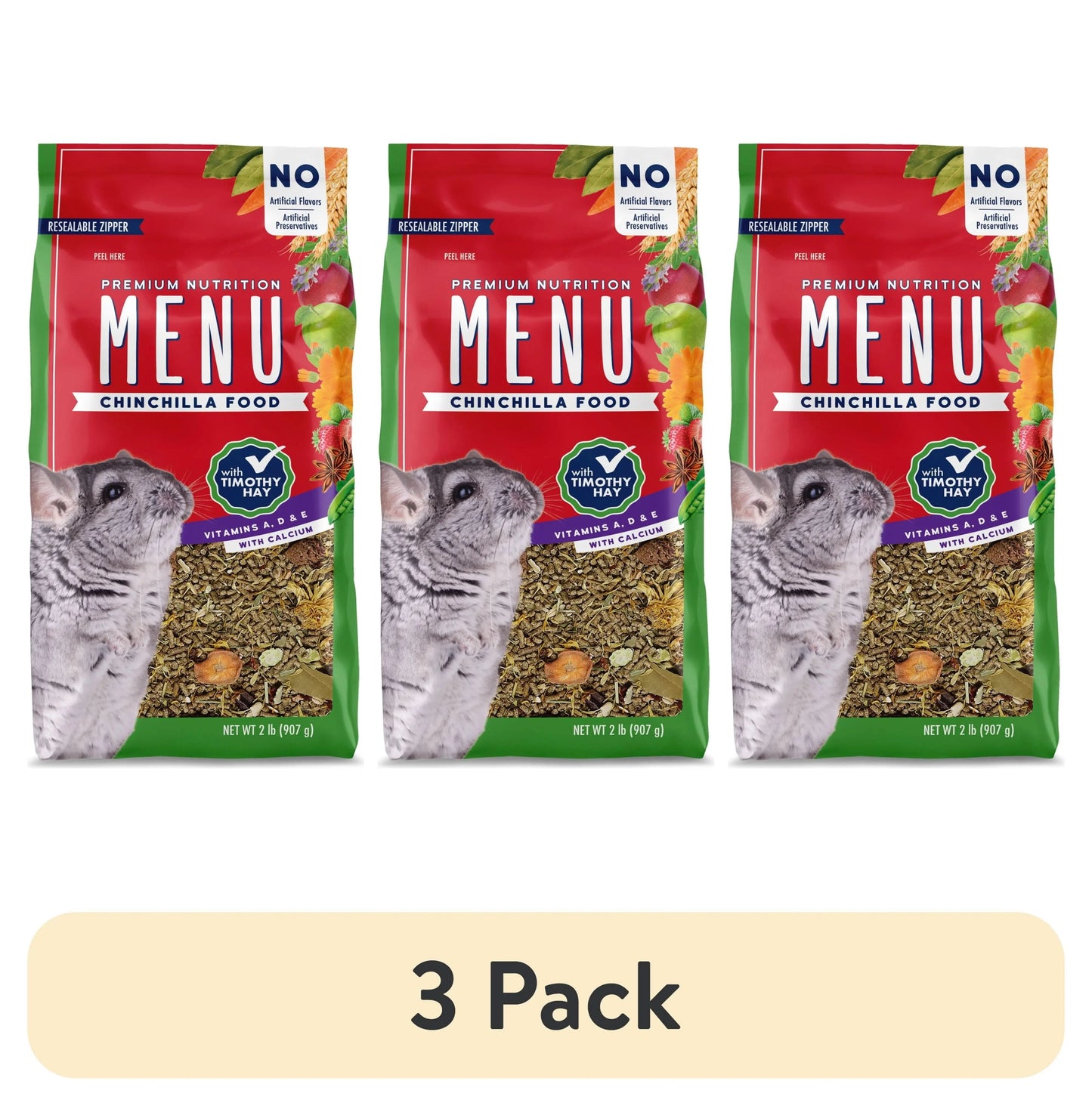 (3 Pack) Menu Chinchilla Food with Timothy