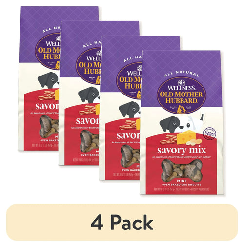 (4 Pack) by Wellness Classic Savory Mix Baked Biscuit Treats for Dogs, Mini 16 Ounce Bag