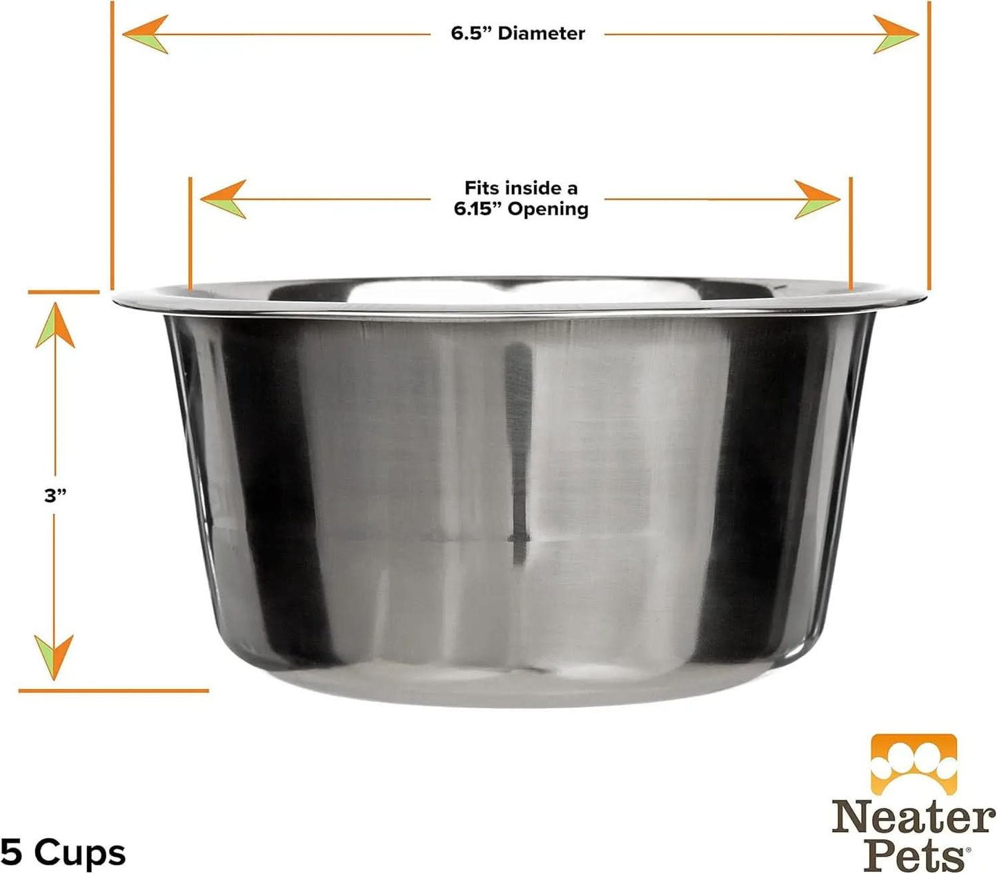 5-Cup Stainless Steel Dog Bowl - Replacement Bowl for Medium Deluxe Neater Feeder, Dishwasher Safe Metal Dish for Dog Food or Water