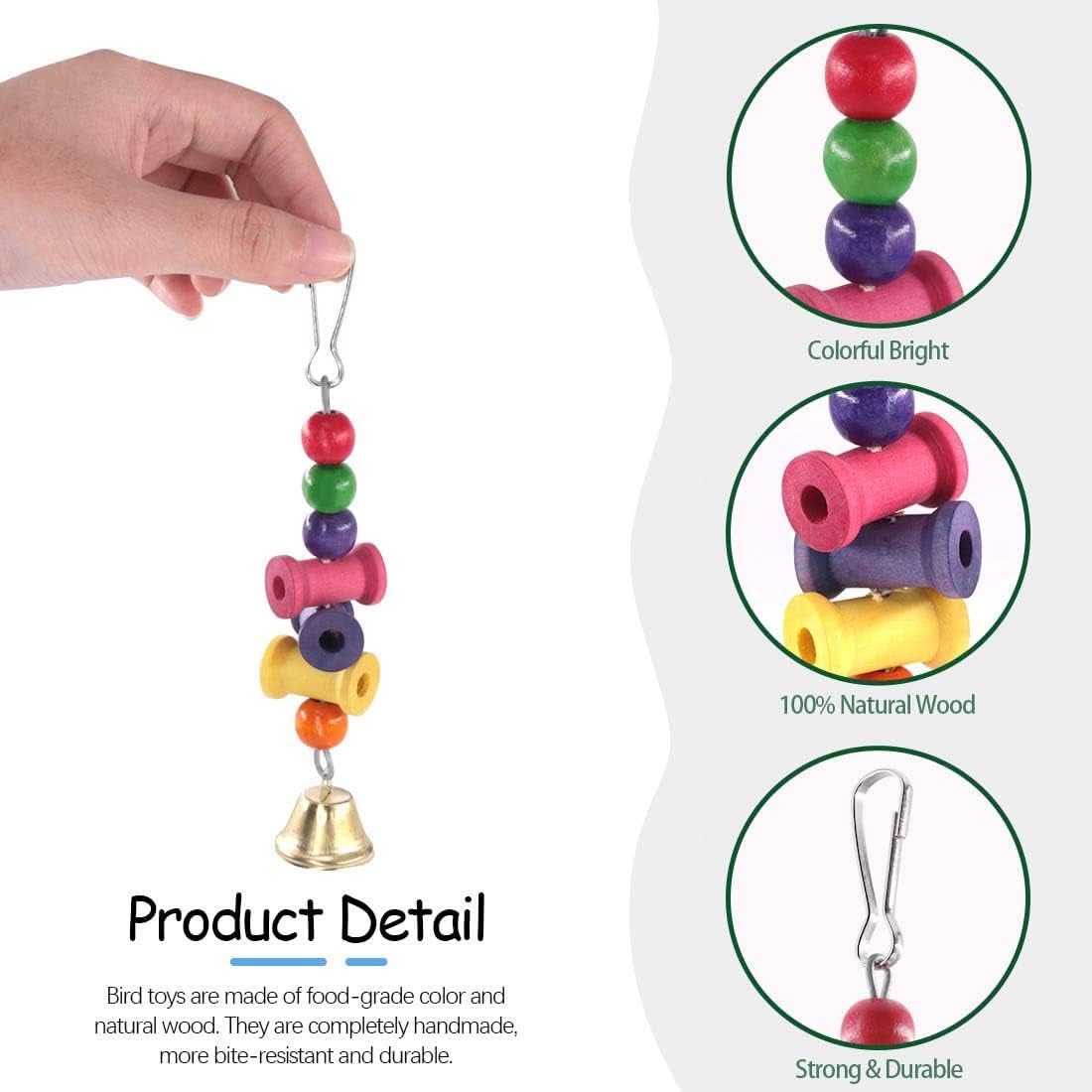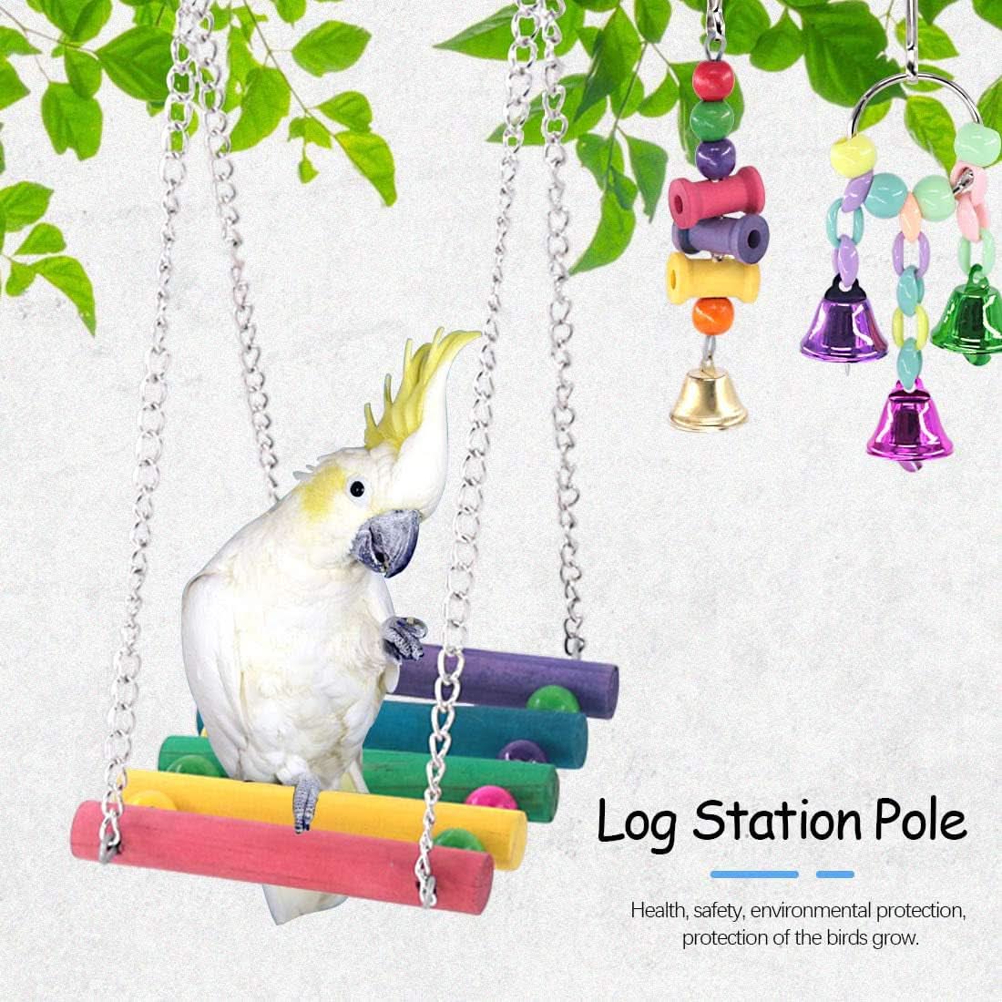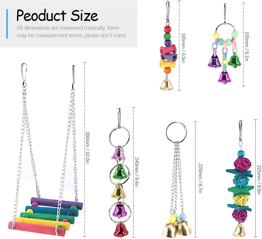 6-Pack Bird Chewing Toy Set with Perches, Swings, and Bells for Parakeets, Cockatiels, Conures, Macaws, Parrots, Finches, and Lovebirds