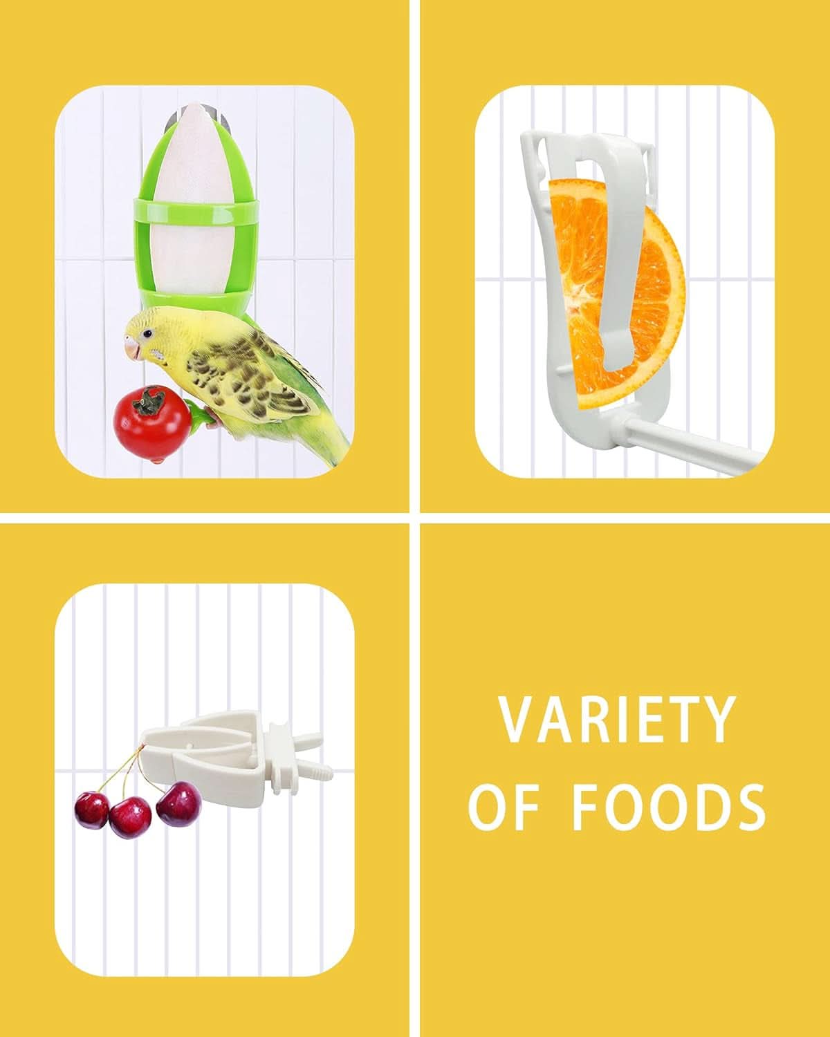 Bird Food Holder with Cuttlebone, Plastic Bird Cage Feeder Stand for Parrots, Budgies, Parakeets, Cockatiels, and Chickens