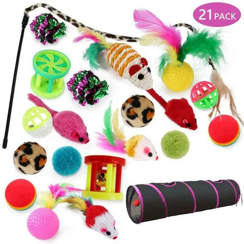 Cat Toys 21Pcs Kitten Toy Set Tunnel Interactive Black Straight through Cat Toy Set with Fluffy Mouse for Cats