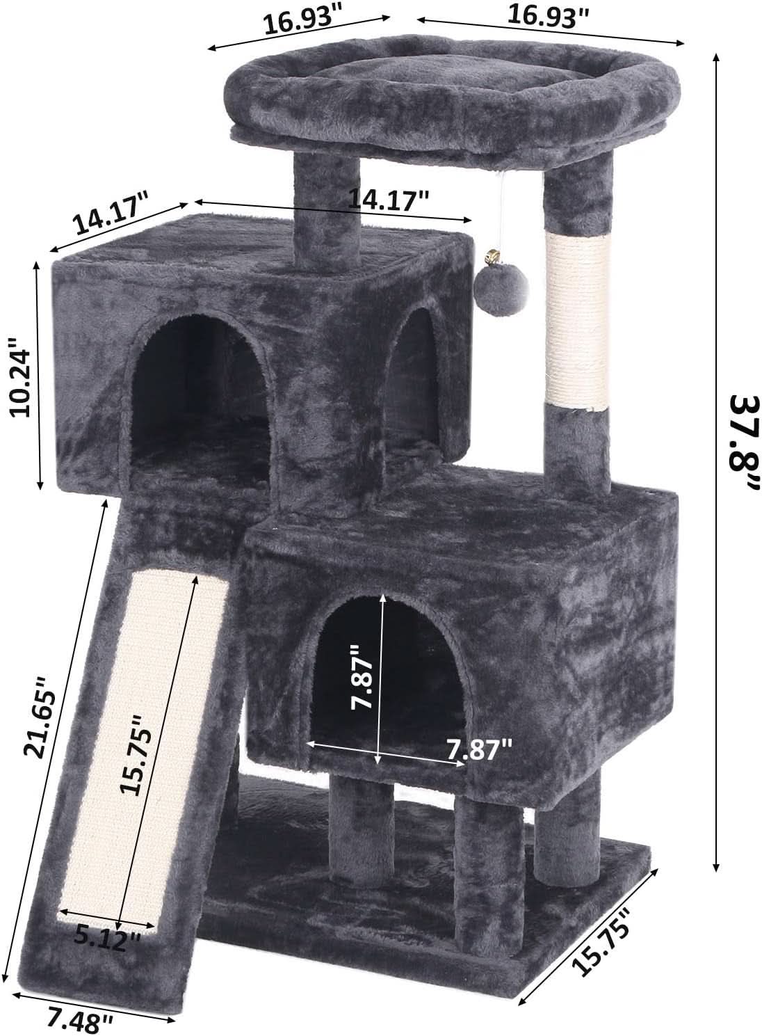 Cat Tree Condo with Sisal Scratching Posts, Plush Perches, and Dual Houses - Grey MMJ10B Kitty Activity Center