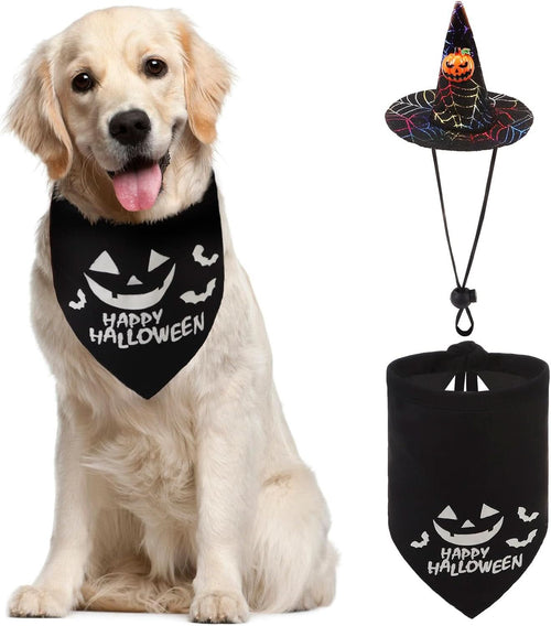Halloween Dog Bandanas with Adorable Wizard Hat and Pumpkin Design - Costumes and Decorations for Small to Large Dogs