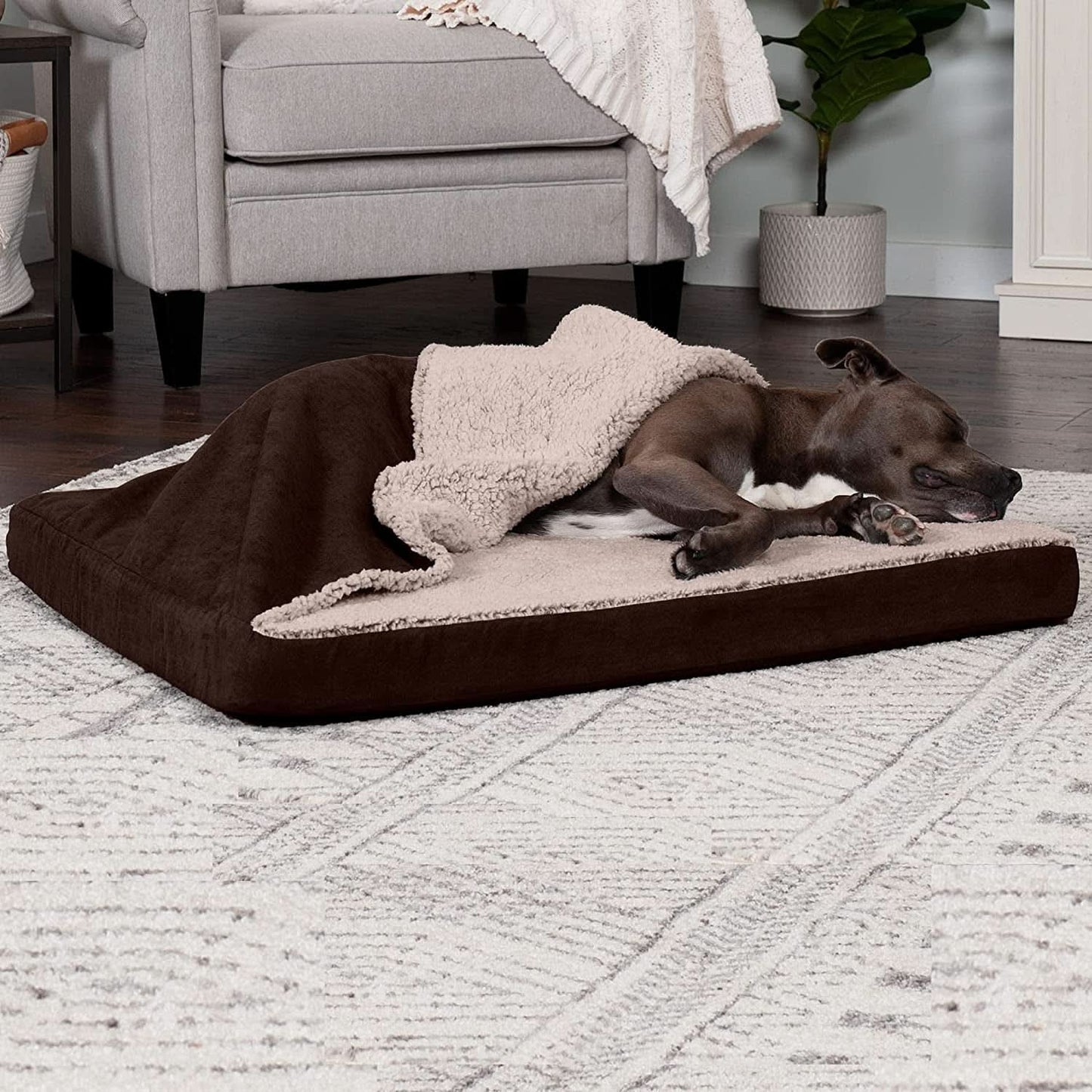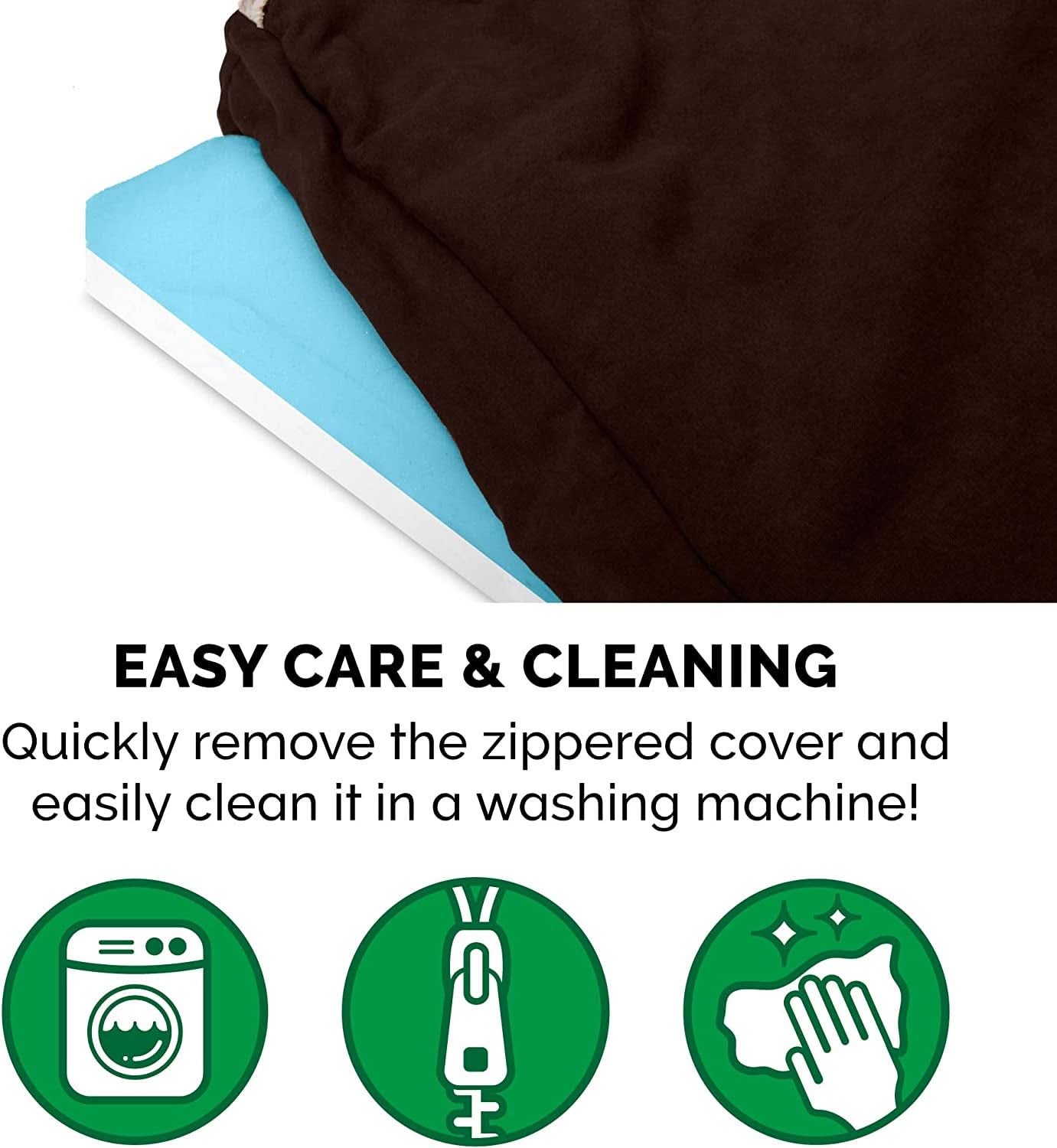 Large Medium Dog Cooling Gel Bed with Removable Washable Cover for Dogs up to 55 lbs - Berber & Suede Top Mattress - Espresso