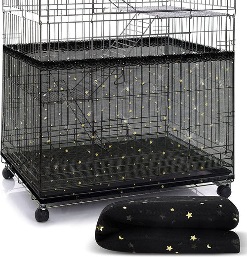 Large Nylon Mesh Bird Cage Cover with Seed and Feather Catcher - Universal Twinkle Star Design for Parakeets, Macaws, and African Grey Cages (Black, XL)