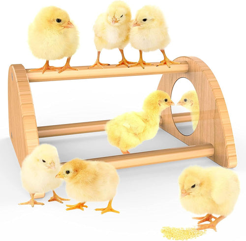 Mini Chick Perch with Mirror - Durable Bamboo Roosting Bar for Coop and Brooder, Ideal Training Perch for Young Chicks, Easy Assembly and Cleaning, Engaging Toy for Poultry