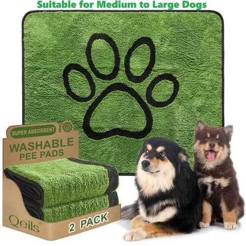 Qeils Super Absorbent Washable Pee Pads for Dogs 2 Pack Green Long Wool Mat Reusable Puppy Pads for Potty Training Outdoorfun Paws Unscented Eco-Friendly