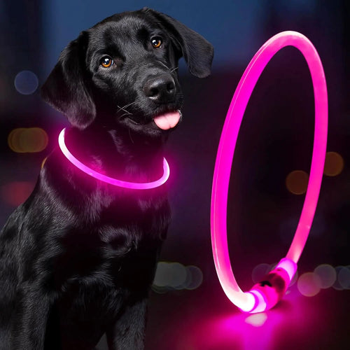 Rechargeable Waterproof LED Dog Collar - Adjustable TPU Glow-in-the-Dark Light for Night Walking (Pink)