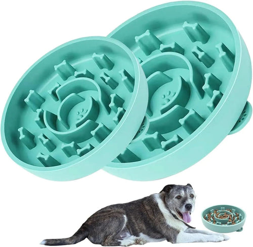 Set of 2 Slow Feeder Dog Bowls with Anti-Tipping Suction Cup Base, Silicone Design to Prevent Gulping and Vomiting for Dogs and Cats, Easy to Clean