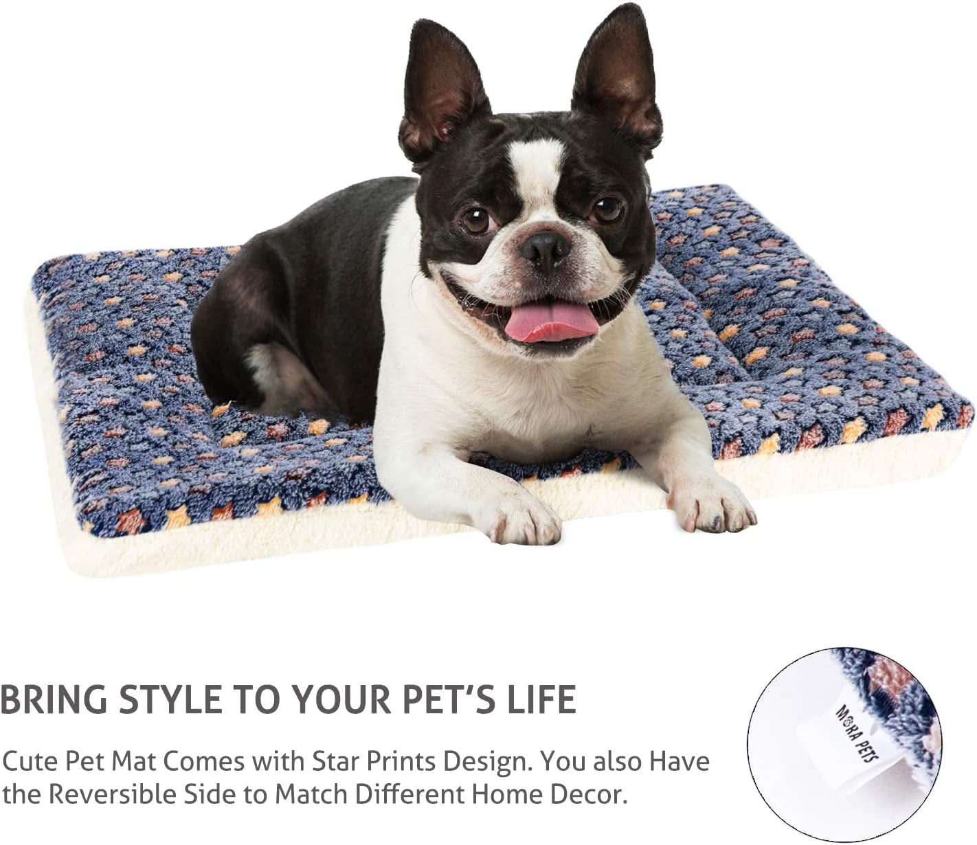 Ultra Soft Reversible Dog Bed Crate Pad with Star Print - Washable Mat for Dogs and Cats, 23 x 18 Inches, Dark Blue